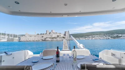 Lezzetli Yemekler: Sizin için özel olarak hazırlanmış yemekleri, Bodrum Denizinin üzerinde tadarak muhteşem bir yoluculağa çıkacaksınız.